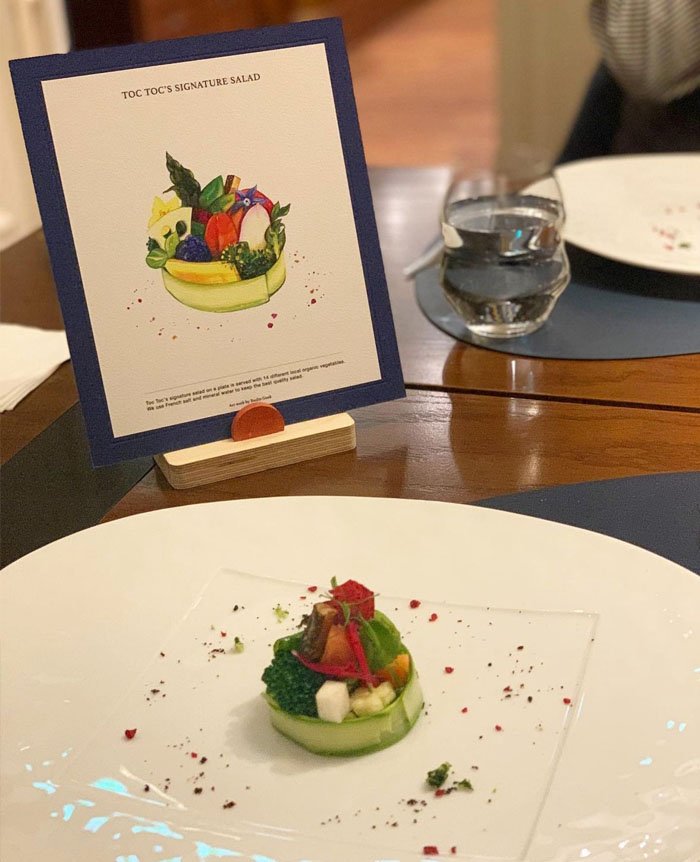 Illustration of Toc Toc’s signature salad on a plate.